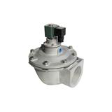 脉冲阀是布袋除尘器重要部件,膜片把电磁脉冲阀分成前、后二个气室,当接通压缩空气通过节流孔进入后气室,此时后气室压力将膜片紧贴阀的输出口,电磁脉冲阀处于关闭状态。脉冲喷吹控制仪电信号消失,电磁脉冲阀衔铁复位,后气室放气孔关闭,后气室压力升高使膜片紧贴阀出口,电磁脉冲阀又处于关闭状态。通过膜片的开启和关闭,使气室内的布袋得到清灰,按阀进出口的角度及进气口的形式可分为三种: