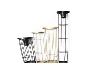 除尘袋笼分为:园型袋笼、分节袋笼、扁形袋笼、梯形袋笼、椭圆形袋笼等。除尘袋笼的材质Q235或20#钢筋,筋的直径4mm-10mm,圈的距离150cm--250cm。除尘袋笼的垂直度6M正负1mm。上端可配文氏管,除尘袋笼有镀锌、喷塑、有机硅处理。